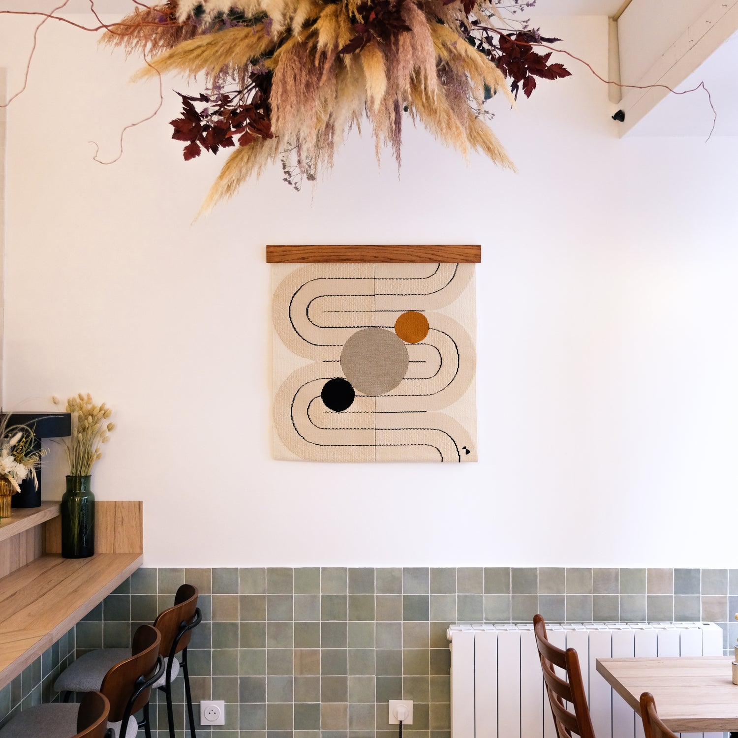 Tapestry made to accompany the modern, chic and cool spirit of a wine bar in the historic city center of Tours (France).