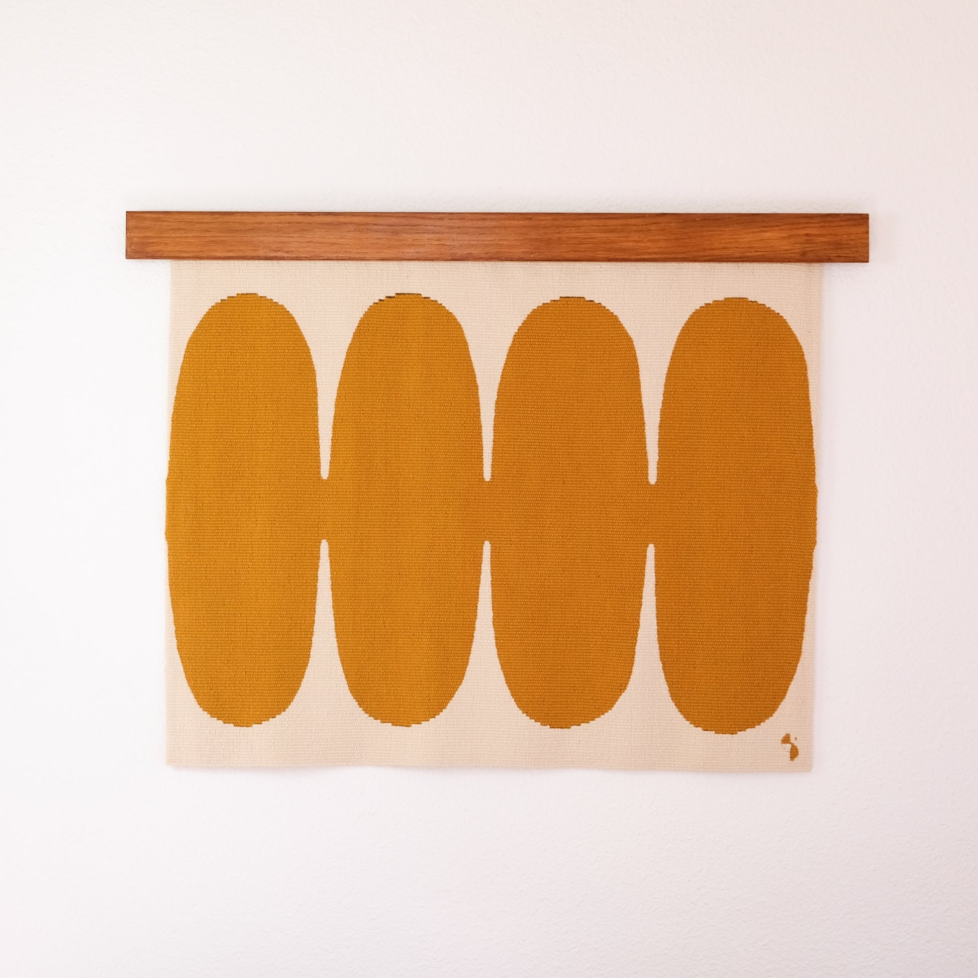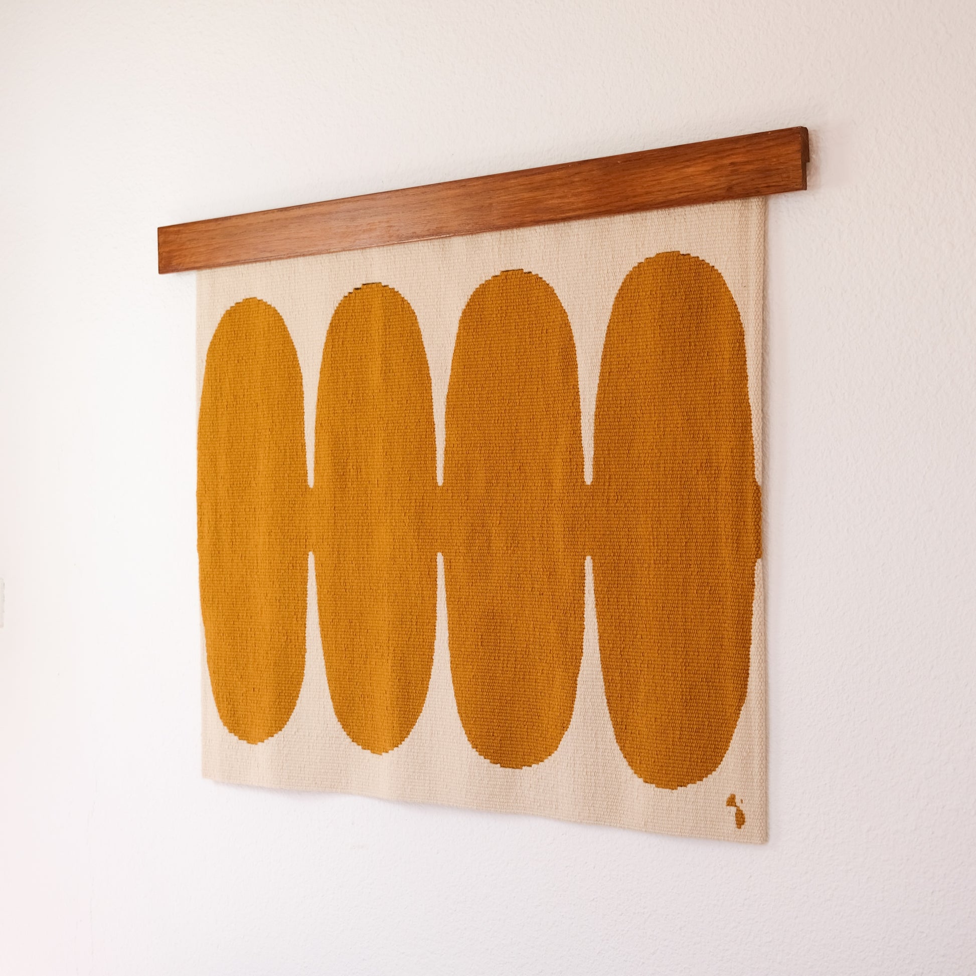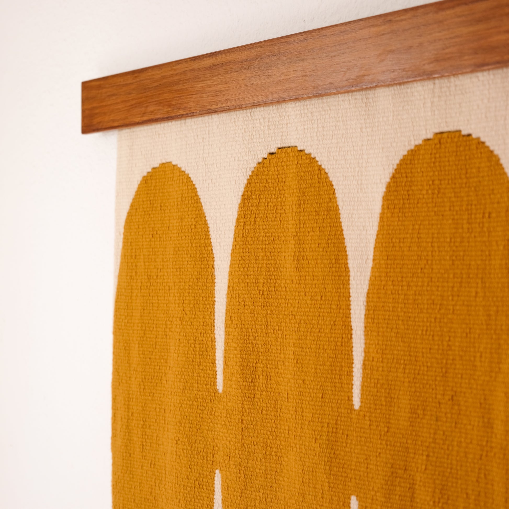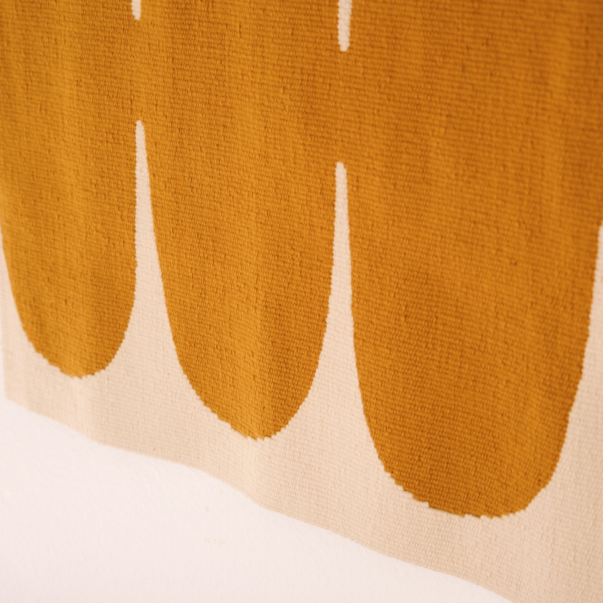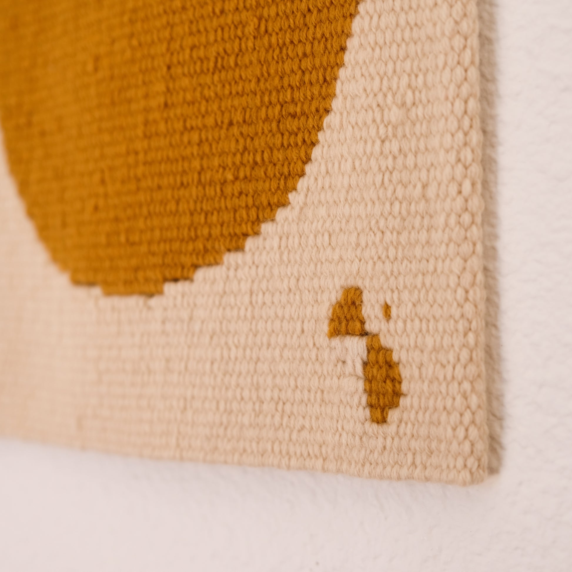 Cette tapisserie est entièrement tissée à la main sur métier à tisser de haute-lisse, en Bretagne, en France, par l'artiste.